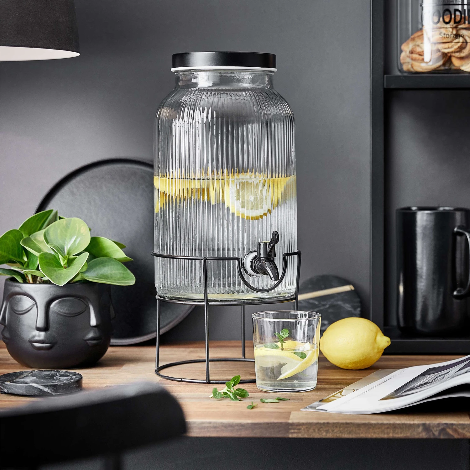 Getränkespender Mit Ständer 2 Tlg. FOUNTAIN In Transparent-Schwarz