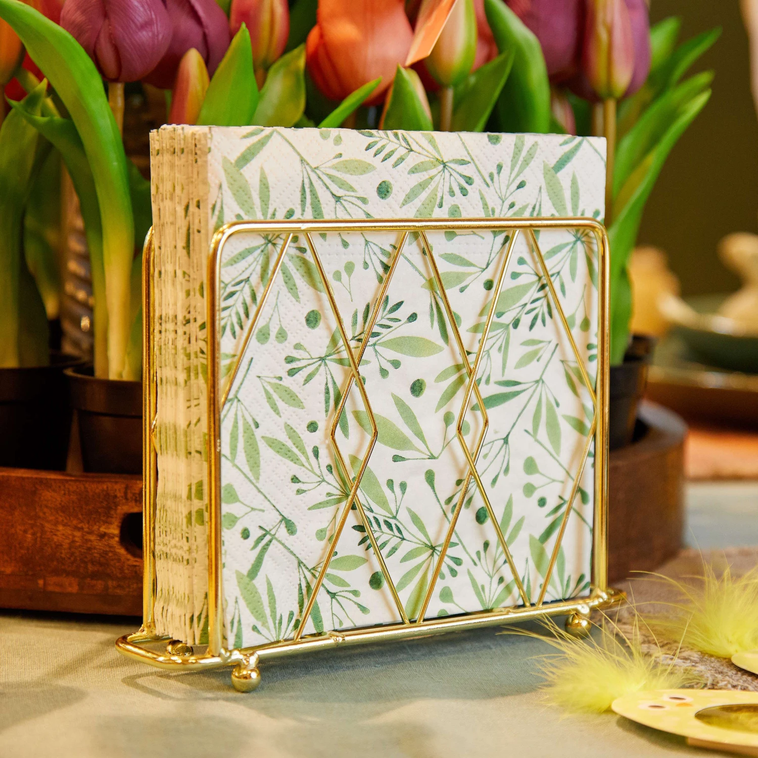 Glam up your lifestyle: Ab heute delegieren Sie das Thema Servietten an den Hold me Tight Serviettenhalter in Gold, der auf Ihrem gedeckten Tisch ganz schön was hermacht.