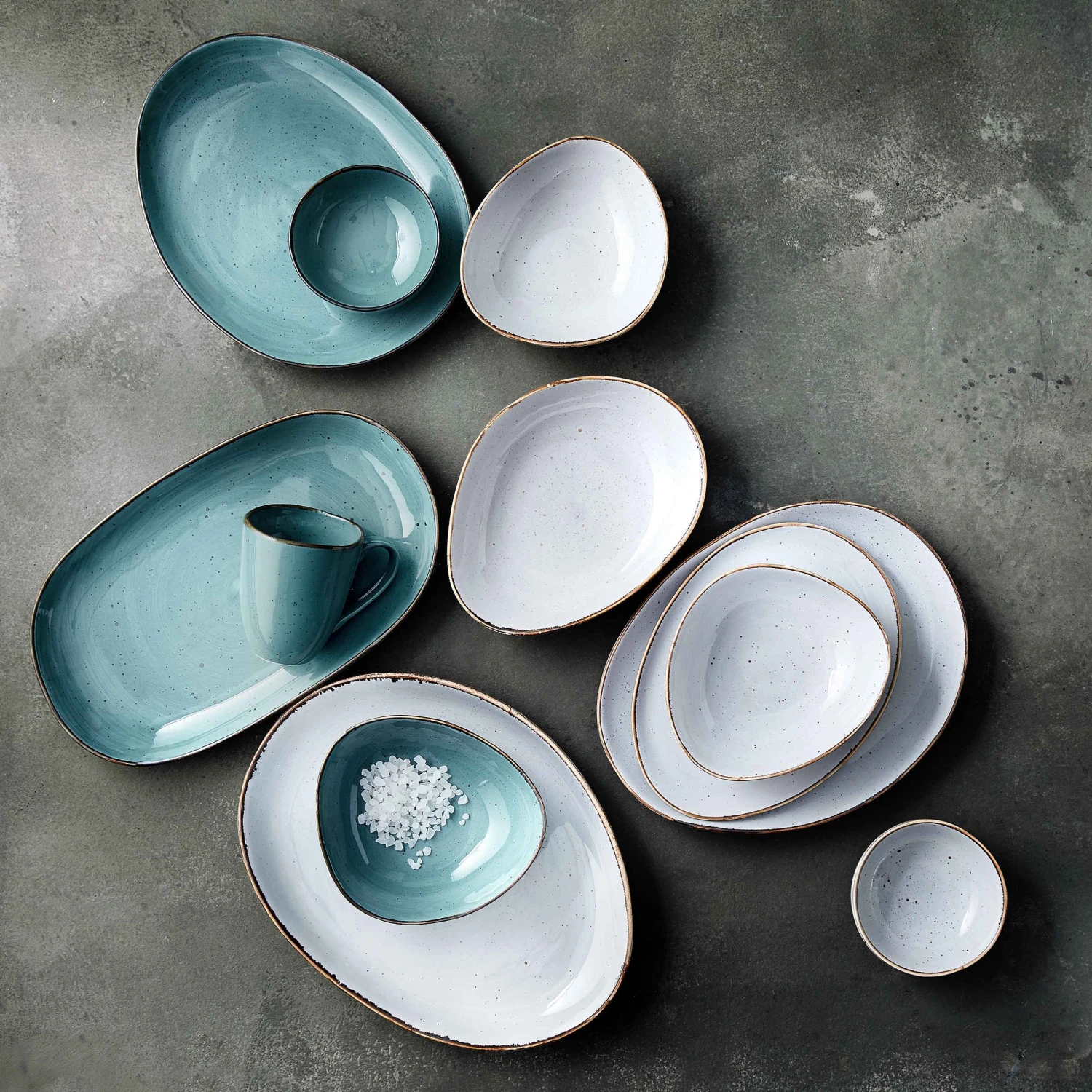 ¡que bonito! Der hochwertige Handmade Look des 8-teiligen Finca Tellersets aus Porzellan fällt sofort ins Auge. Kein Wunder: Die reaktive Glasur mit natürlichen Sprenkeln, die authentische Form und die Vintage Optik erinnern an echtes Handwerk, wie man es nur noch in alten Manufakturen findet. Damit ist Finca kein Geschirr „von der Stange“, sondern deckt Ihren Tisch mit individuellen Schmuck- und Sammlerstücken.